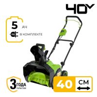 Например Greenworks GD40ST40 40V — аккумуляторный снегоуборщик из серии 40V для очистки небольших территорий. Ширина захвата составляет 40 см. Мощность 1400 Вт. Шнек выполнен из высокопрочного пластика.