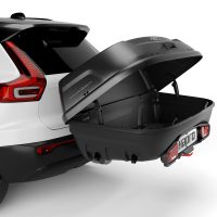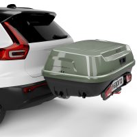 Бокс поставляется в комплекте с платформой, на которую устанавливается. Платформа имеет функцию наклона (угол 760) для беспрепятственного доступа к багажнику автомобиля и оснащена световой панелью с разъемом питания 13-pin (адаптер 7-pin входит в комплектацию).Платформа дублирует стоп-сигналы, сигналы поворота, фонарь заднего хода, противотуманный свет.
