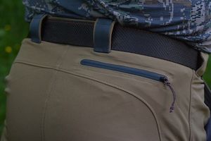 Брюки выполнены максимально дышащими, хорошо растягиваются и, соответственно, дают полную свободу движений. Исходя из этого, брюки предназначены для активной ходовой охоты в относительно тёплое время года. По заявлению производителя, брюки оснащены системой закатывания штанин. На деле всё немного проще – после закатывания штанины она фиксируется специальной петлёй на кнопку, что предотвращает сползание штанины обратно. Для перехода мелкой реки ли охлаждения голеней это действительно полезная опция.